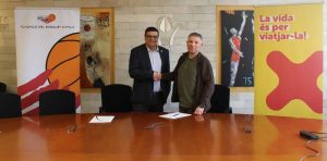 Pau Ribas, ambaixador del Bàsquet Català; Ferran Aril, president de la FCBQ i l’FCB; i Toni Sánchez-Grao, relacions Institucionals de El Corte Inglès a la regió Mediterrani / Foto: Pere Puntí (MD)